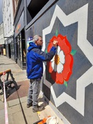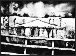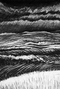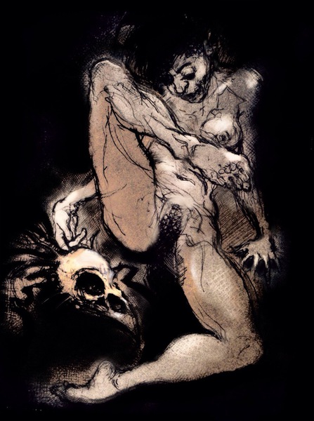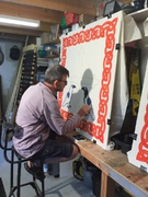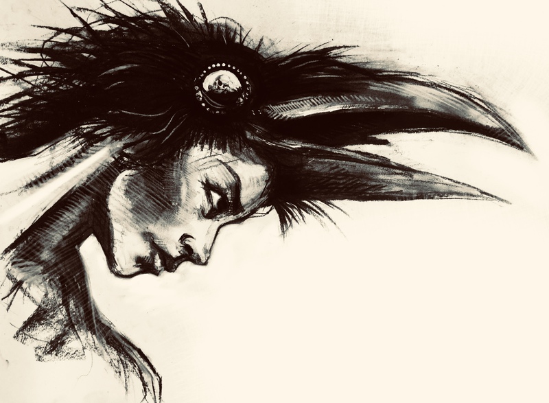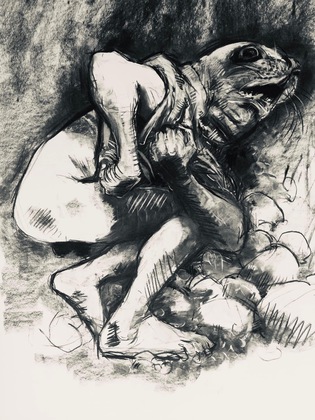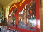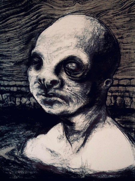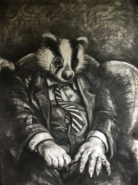 As regards materials, I work in acrylic paints and inks, charcoal, and digital packages to both manipulate images I've created using traditional methods and to make images from scratch, as well as building and painting pubsigns, painting murals, or building props.